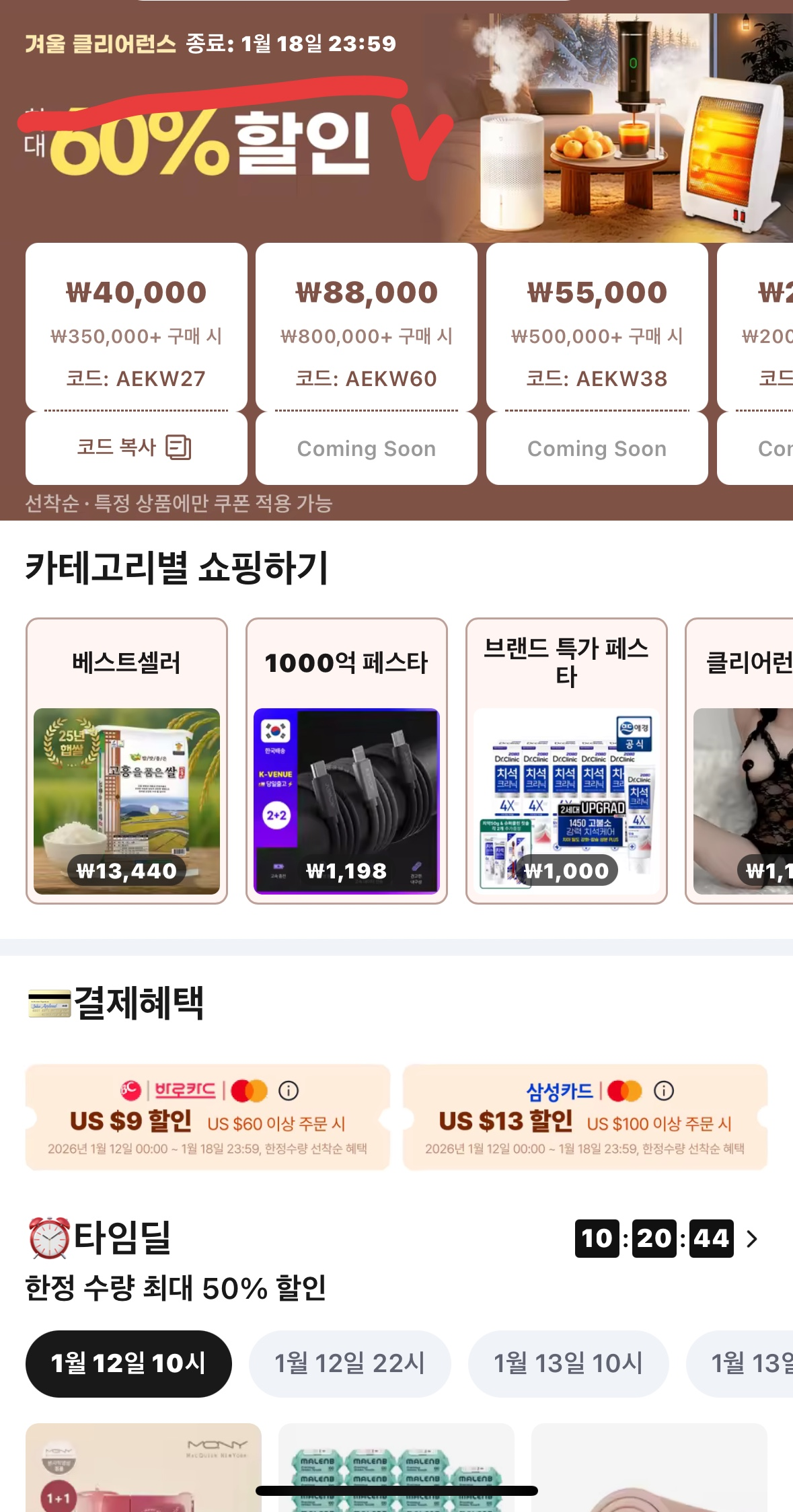 2026년 알리 1월 프로모션코드 겨울템 쟁일 마지막 기회