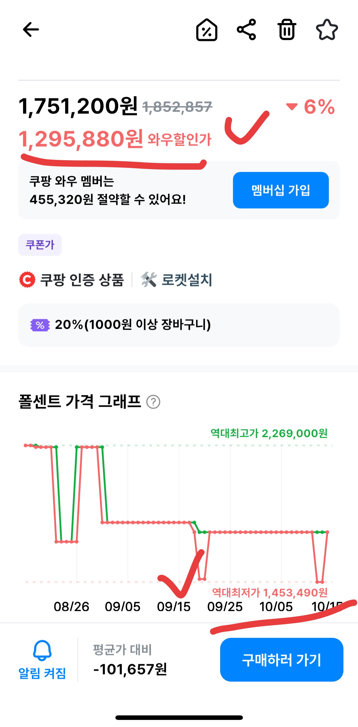 | 이전 역대 최저가 | 1,453,490원 | 이 가격에 구매했다면 '성공'이라 불렸습니다. |