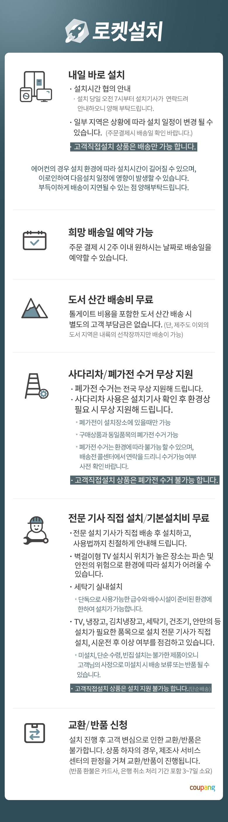 - 편의: 추가 비용 걱정 없는 무료 배송 및 전문 로켓설치