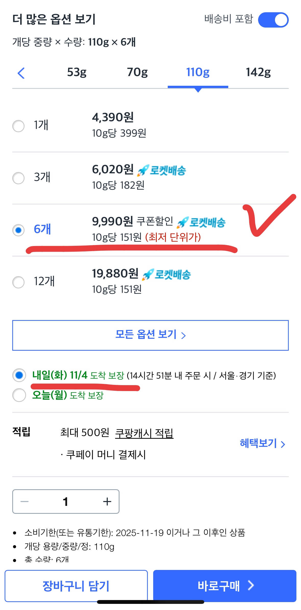 - 배송: 쿠팡 와우 회원이라면 이 가격에 '로켓배송(무료배송)'이 적용됩니다.