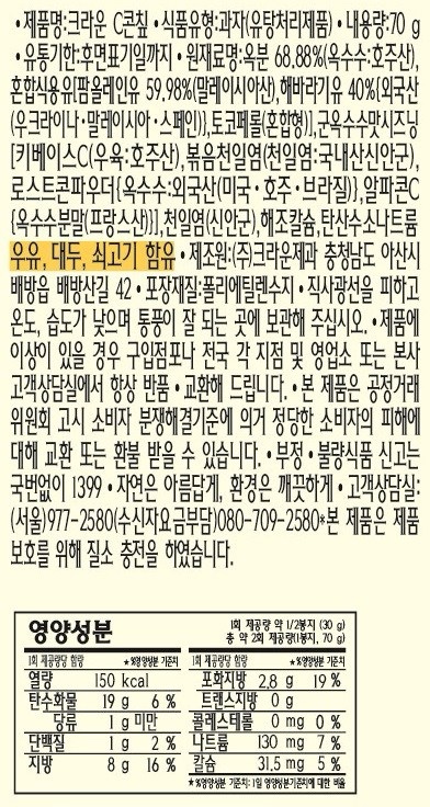 • 알레르기 정보: 제품 뒷면(이미지)을 확인한 결과, 우유, 대두, 쇠고기, 닭고기가 함유되어 있습니다. 해당 성분에 알레르기가 있다면 주의가 필요합니다.