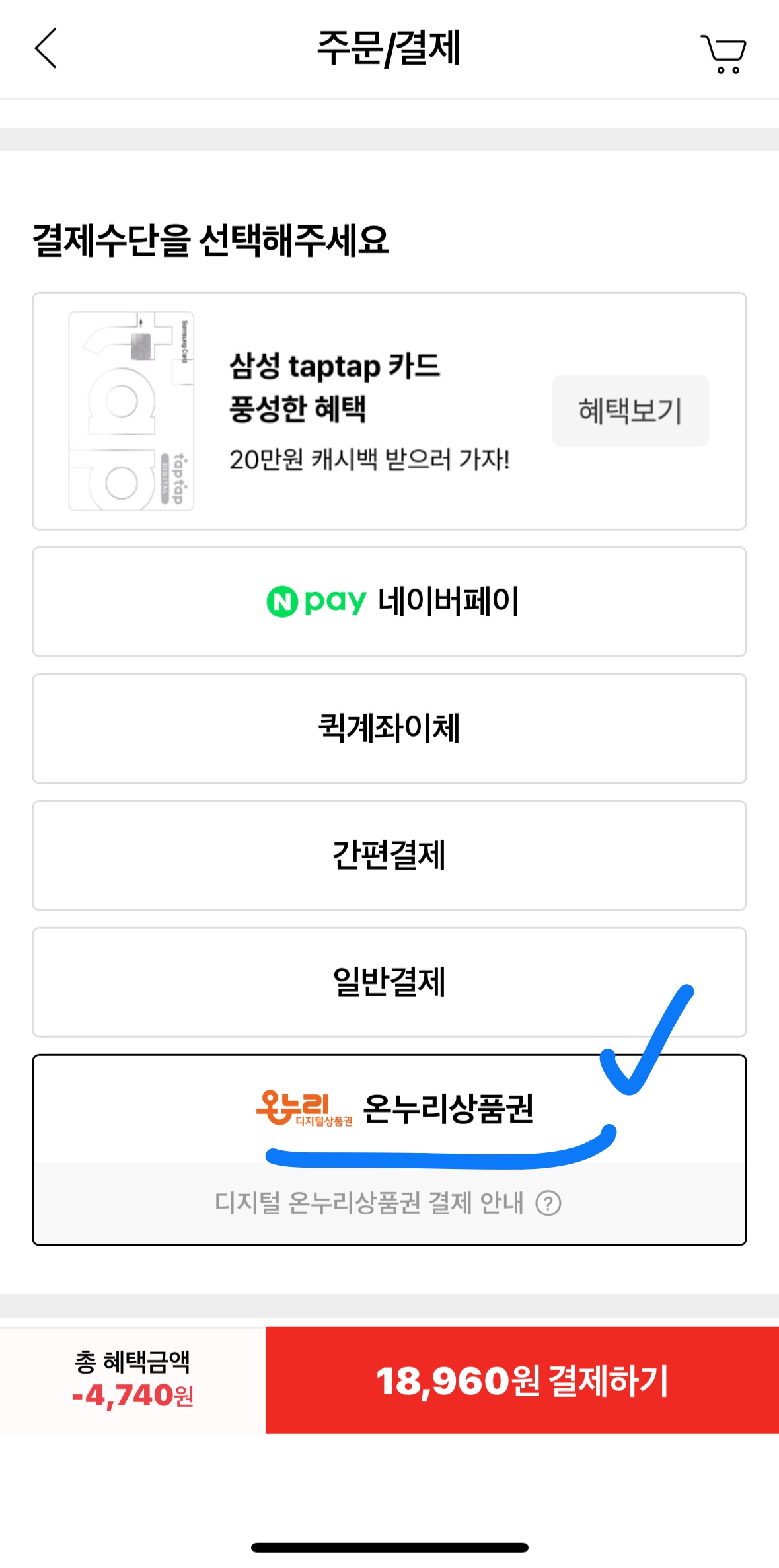 1. 현재 결제 수단에 온누리상품권 사용이 가능합니다.