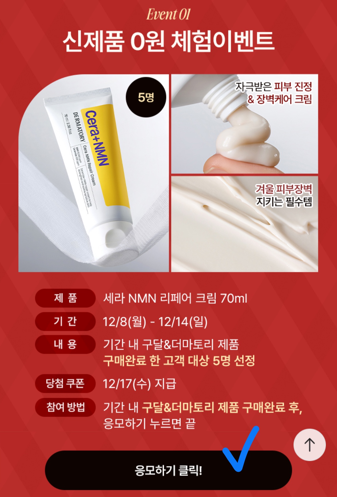 - 대상 제품: 더마토리 세라 NMN 리페어 크림 (70ml 본품)