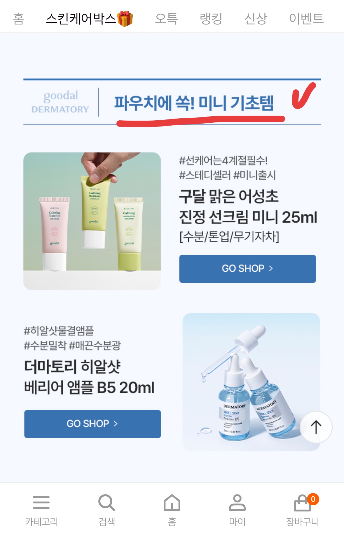 - 구성: 구달 선크림, 더마토리 앰플, 페리페라 틴트/쿠션 등