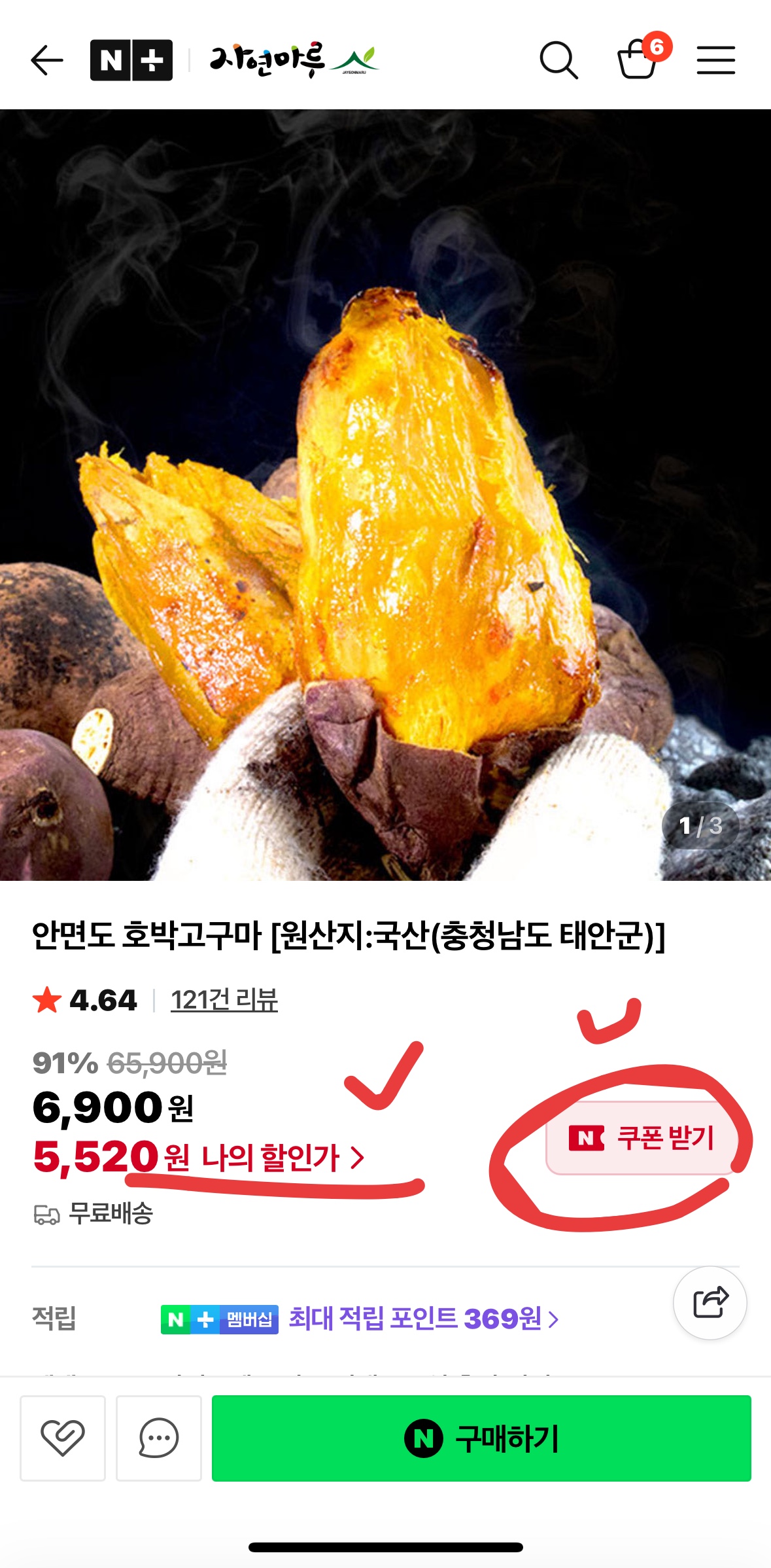 [핫딜+] 안면도 호박고구마 3kg 5천원대/무료배송