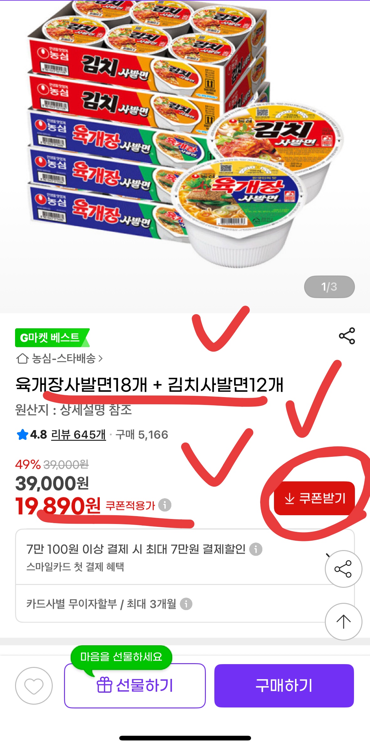 안녕하세요, 사이버 보부상 김 과장입니다.요즘처럼 바쁠 때, 또는 밤늦게 출출할 때 사발면 하나가 간절할 때가 있습니다. 하지만 편의점에서 하나에 1,200원 넘게 제값 주고 사 먹기엔 어딘가 아깝다는 생각, 다들 해보셨을 겁니다.오늘 그 '아까운' 돈을 완벽하게 아낄 수 있는 비상식량 핫딜 보따리를 풀겠습니다. ▼ 바쁘면 최종 결론부터 확인하기 ▼ 오늘의 핫딜: 육개장사발면 18개 + 김치사발면 12개의 가치오늘 가져온 상품은 말이 필요 없는 농심의 스테디셀러, 육개장 사발면과 김치 사발면 조합입니다.총 30개 구성으로, 당신의 탕비실이나 자취방 비상식량 창고를 단번에 채울 수 있는 든든한 물량입니다. 맛도 '육개장 18개', '김치 12개'로 가장 인기 있는 두 가지 맛을 황금 비율로 조..